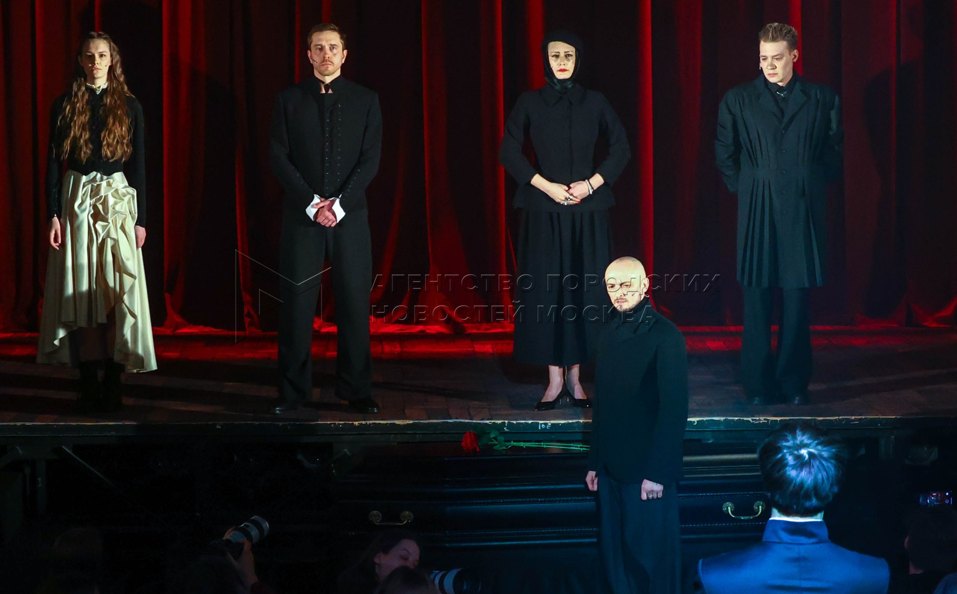 Показ спектакля «Гамлет» режиссера Мурата Абулкатинова по пьесе Ники Ратмановой по мотивам произведения Уильяма Шекспира на основной сцене Театра на Таганке перед премьерой.