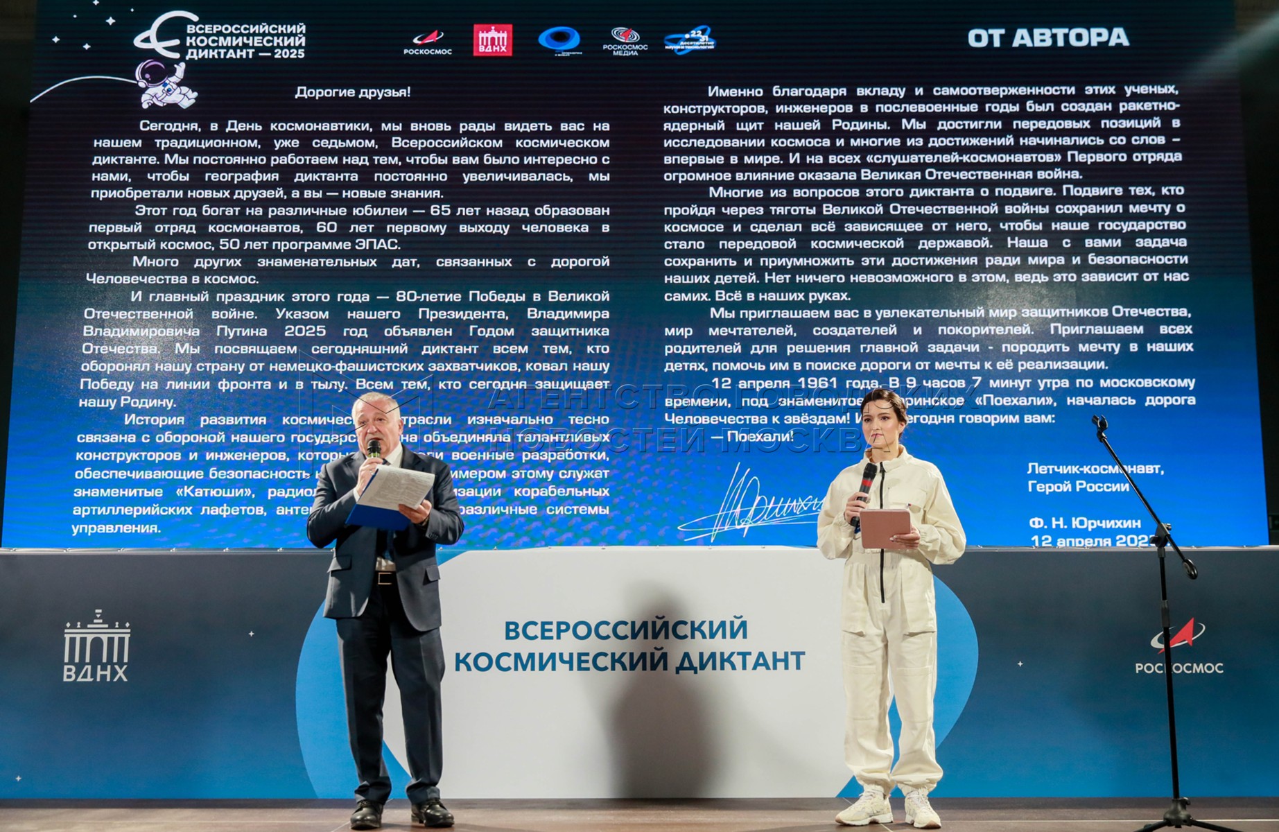 • Описание: Всероссийский космический диктант под руководством летчика-космонавта Федора Юрчихина в центре «Космонавтика и авиация» на ВДНХ.