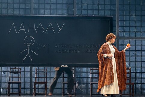 - Описание: Павел Попов (Лев Ландау) и Юлия Рутберг (Любовь Ландау). Пресс-показ спектакля «Солнце Ландау», в рамках Открытого фестиваля искусств «Черешневый лес», на основной сцене Государственного академического театра имени Вахтангова. Режиссер постановки – Анатолий Шульев.