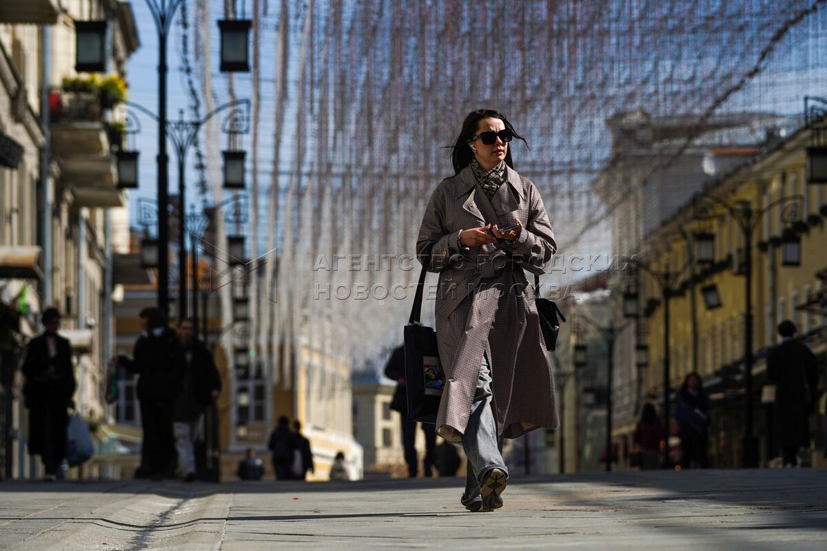 Девушка идет по Никольской улице. Городские жанры и виды Москвы 14 апреля 2025 го...