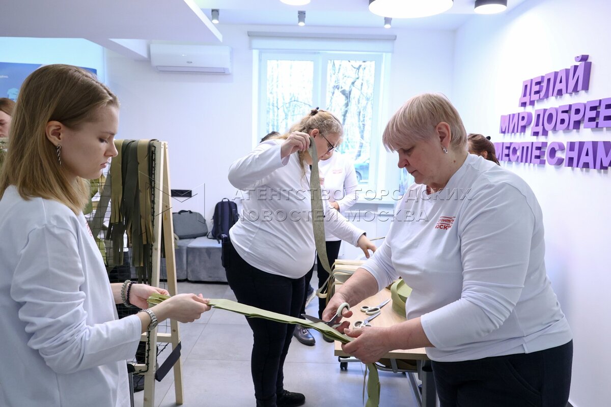 Мастер-класс по созданию маскировочных сетей, окопных свечей и тактических браслетов в рамках проекта «Время добра. Весна» в волонтерском центре «Доброе место. СЗАО».