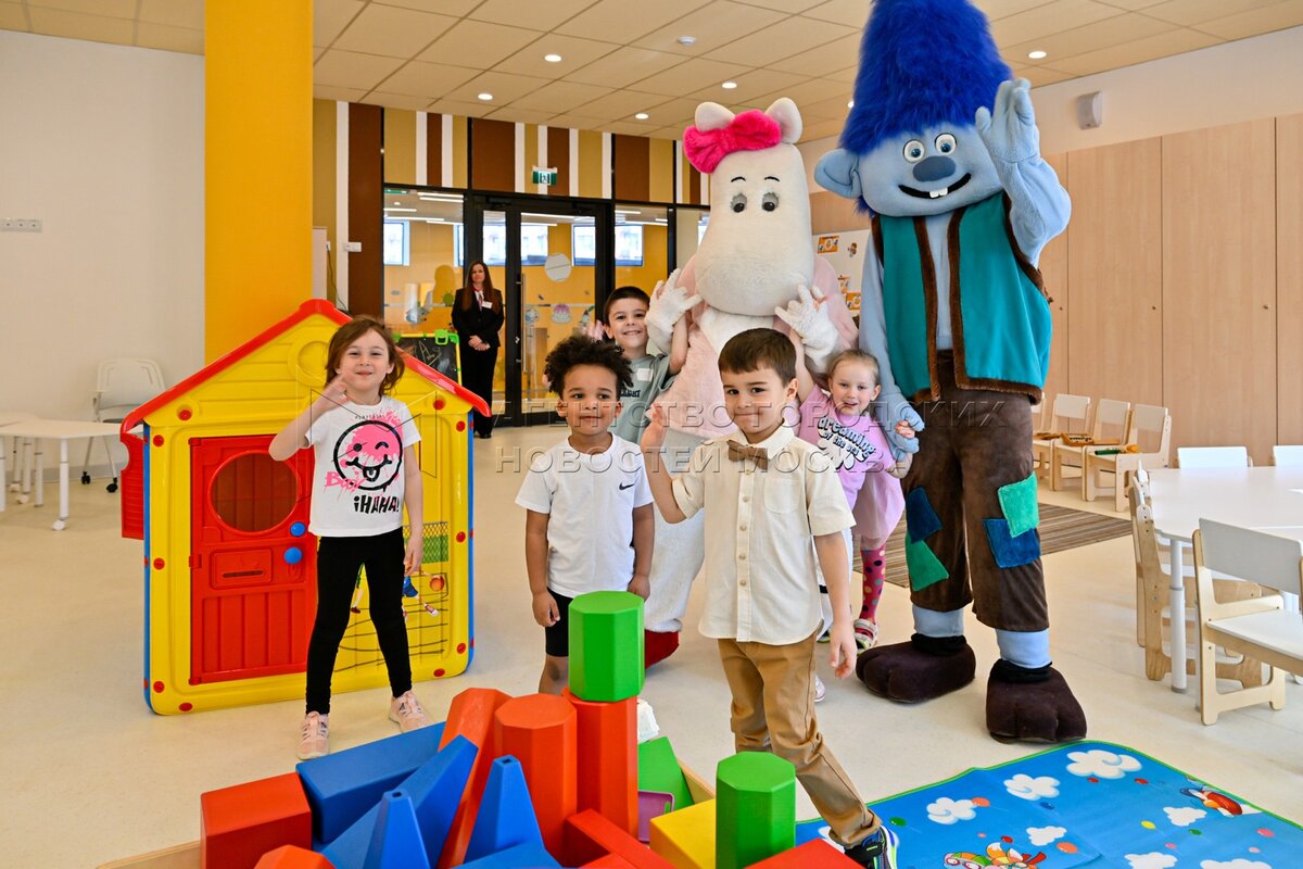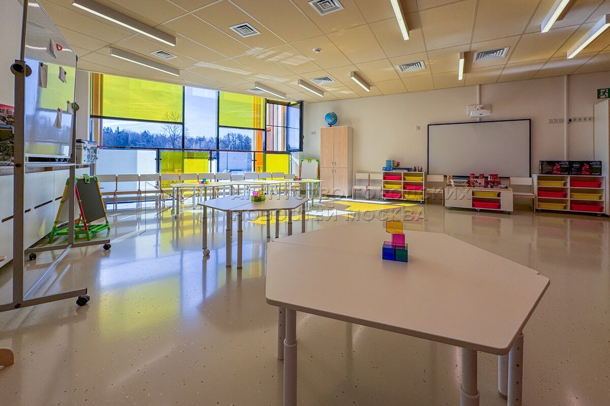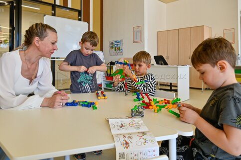 Дети собирают конструктор. Новый детский сад на ул. Александры Монаховой в ТиНАО....