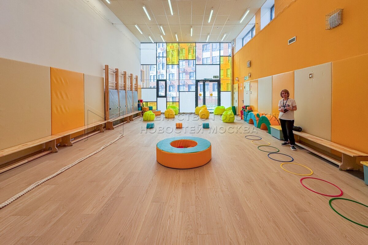 Спортивный зал. Новый детский сад на ул. Александры Монаховой в ТиНАО. Фото: Прес...