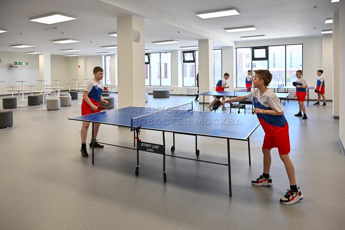 Дети играют в настольный теннис. Новая школа №2070 имени Героя Советского Союза Г...