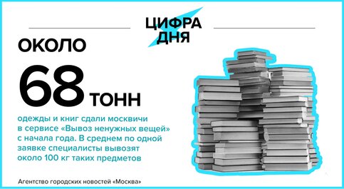 • Заголовок: Цифра дня 15 апреля: Около 68 тонн одежды и книг сдали москвичи в сервисе «Вывоз ненужных вещей»
