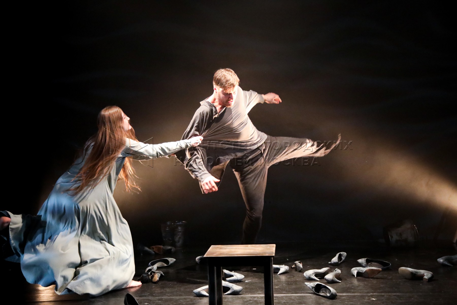 Актеры Маргарита Якимова в роли Русалки и Олег Гаас в роли Князя. Показ спектакл...