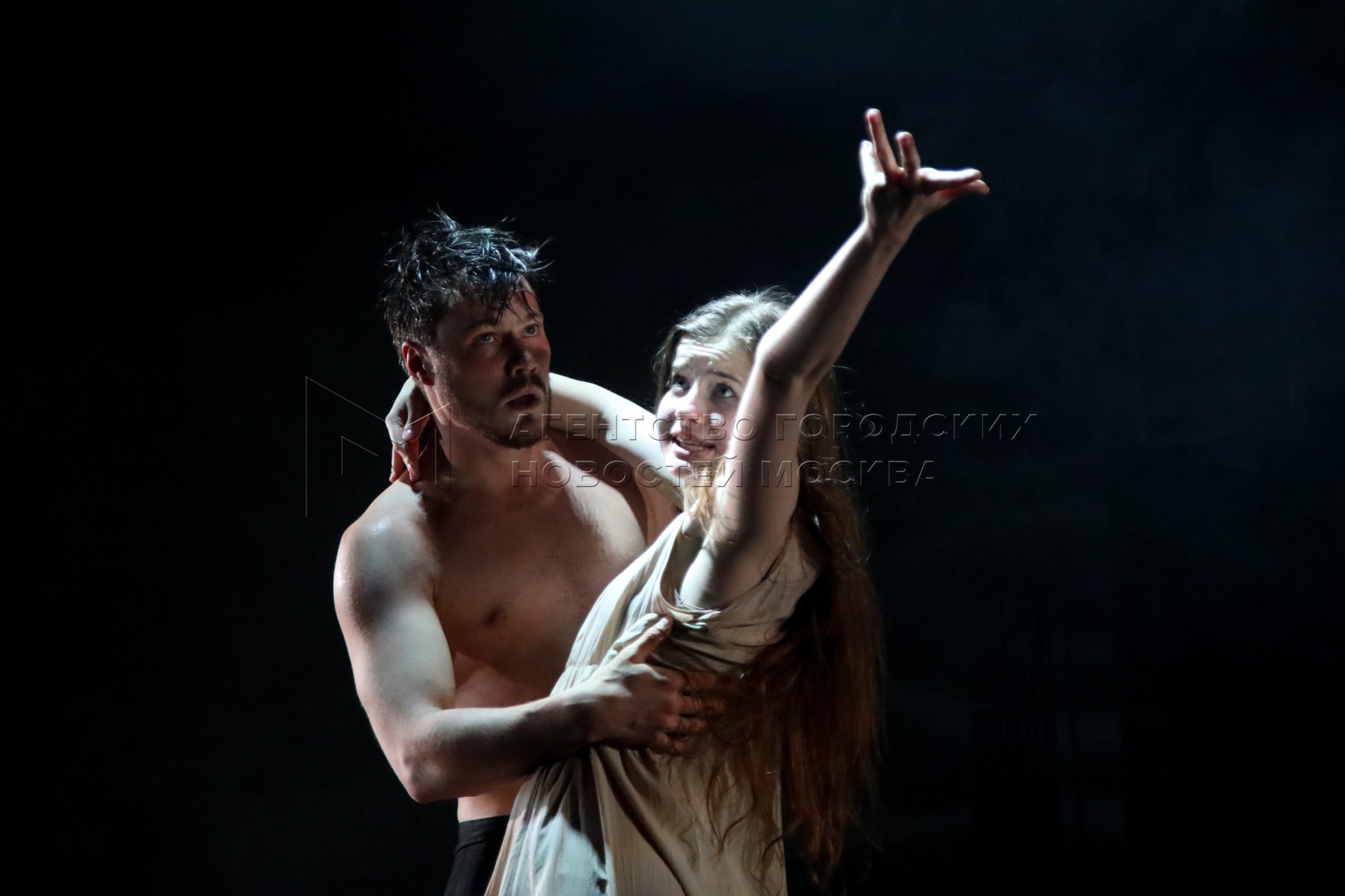 Актеры Олег Гаас в роли Князя и Маргарита Якимова в роли Русалки. Показ спектакля «Русалка» перед премьерой в Московском художественном театре имени Чехова.
