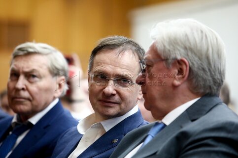 Академик РАН, заместитель президента Российской академии образования Геннадий Онищенко (справа). Церемония награждения победителей общенациональной премии и одноименного конкурса Российского профессорского собрания «Учебник года» в Российской академии образования.