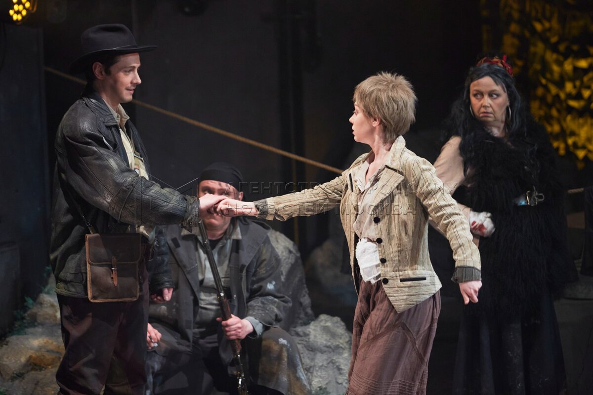 Актеры Ирина Уханова в роли Марии и Иван Арнгольд в роли Джордана. Показ спектакл...