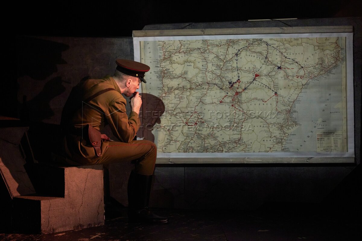 Актер Иван Арнгольд в роли Джордана. Показ спектакля «По ком звонит колокол» в Мо...