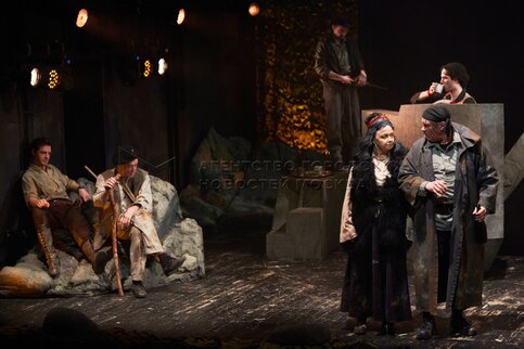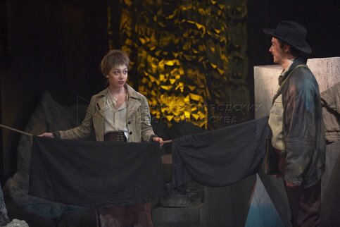 Актеры Иван Арнгольд в роли Джордана и Ирина Уханова в роли Марии. Показ спектакл...