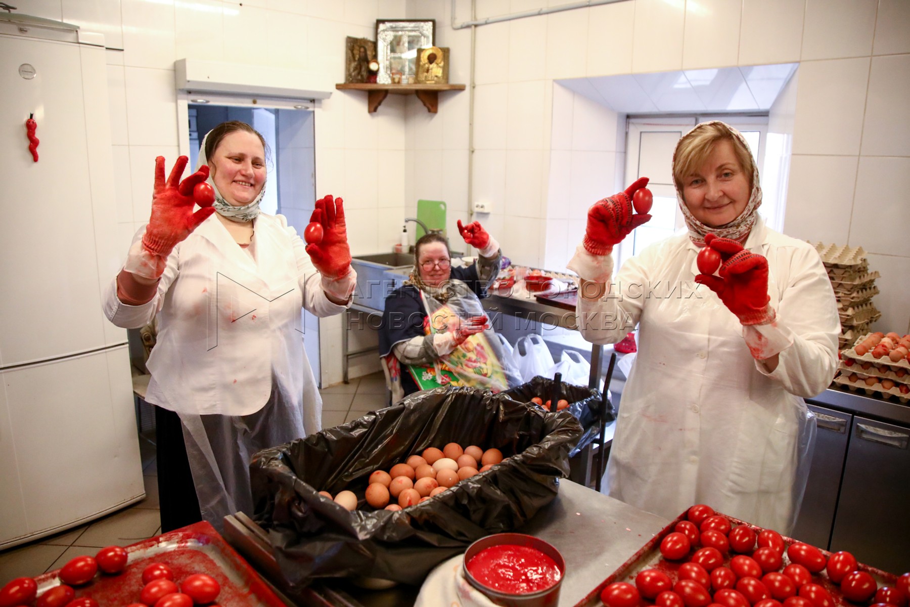 Покраска яиц в Даниловском монастыре в преддверии Пасхи.