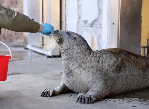 • Описание: Доставленные в Московский зоопарк морские зайцы Макс и Чарли. Фото: пресс-служба Московского зоопарка.