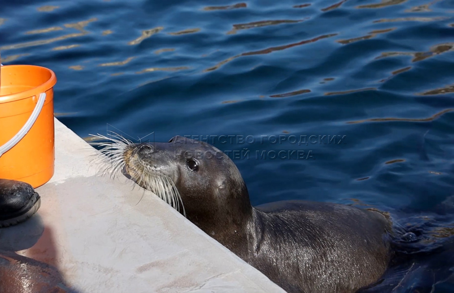 • Заголовок: Доставленные в Московский зоопарк морские зайцы Макс и Чарли