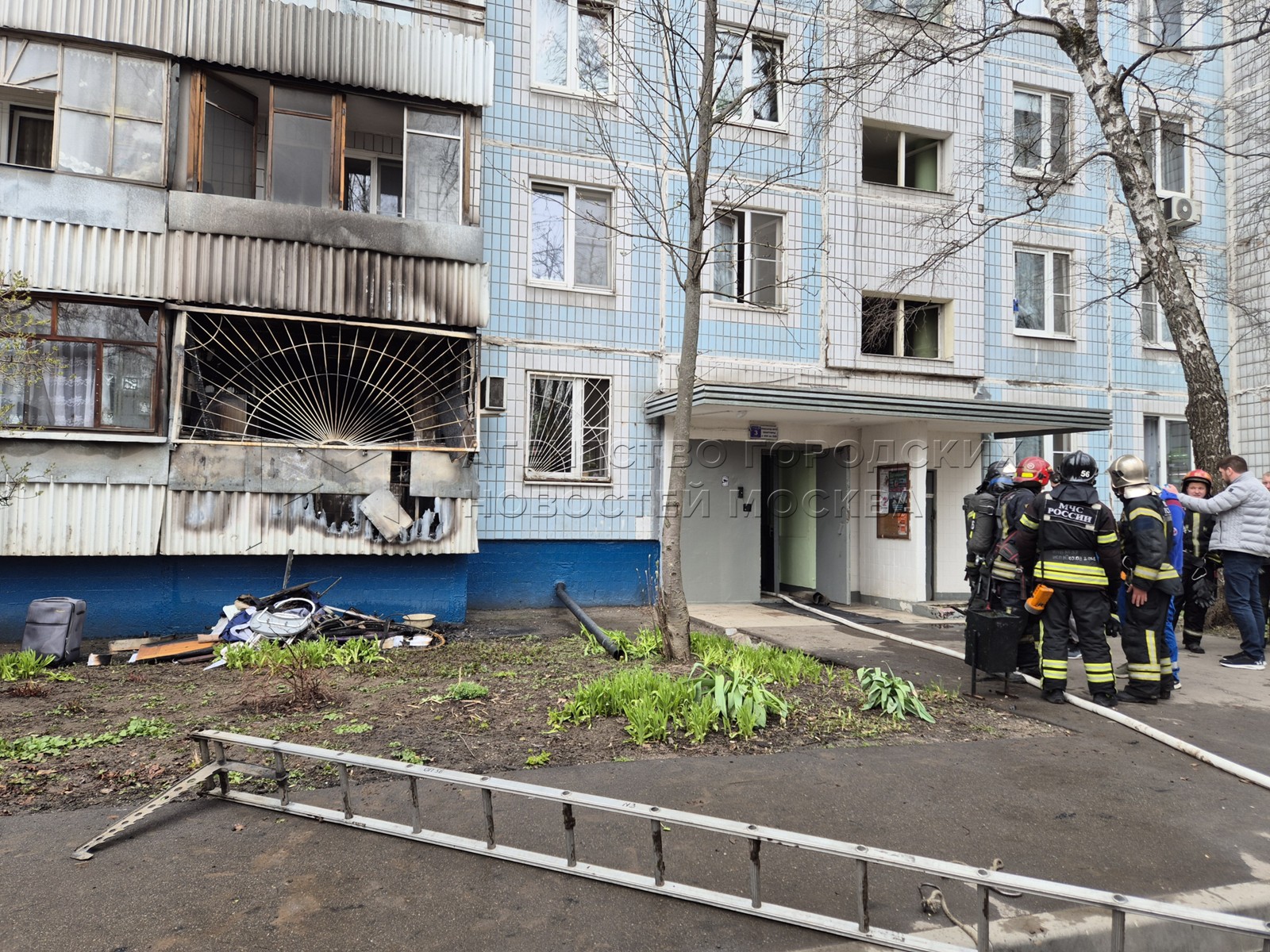 Устранение последствий пожара в жилом доме на ул. Голубинская в столичном районе Ясенево.
