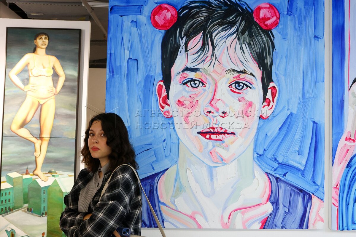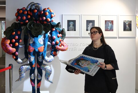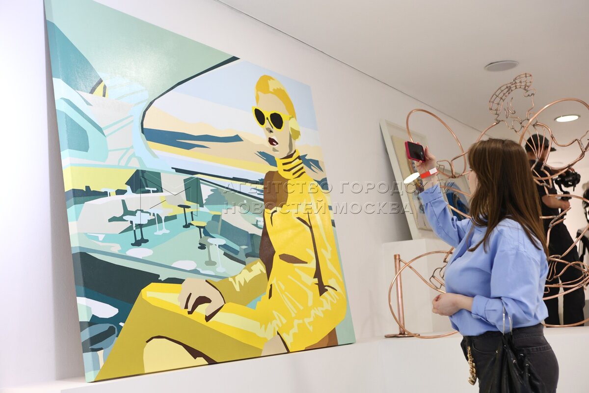 Журналист и телеведущая Эвелина Хромченко (слева). Коллективная выставка «Что за ...