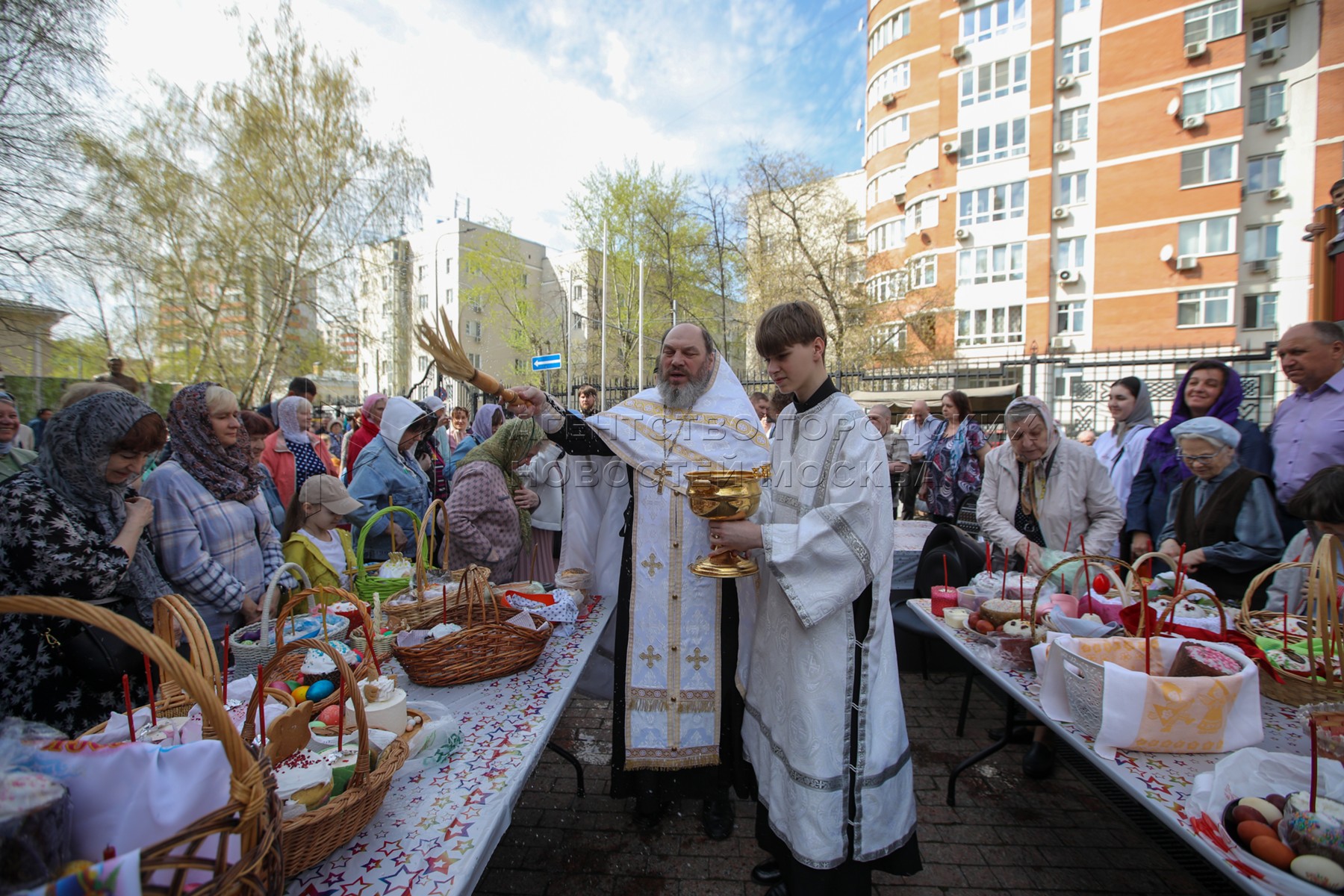 • Заголовок: Освящение пасхальных куличей и яиц в храме Благовещения Пресвятой Богородицы в Сокольниках