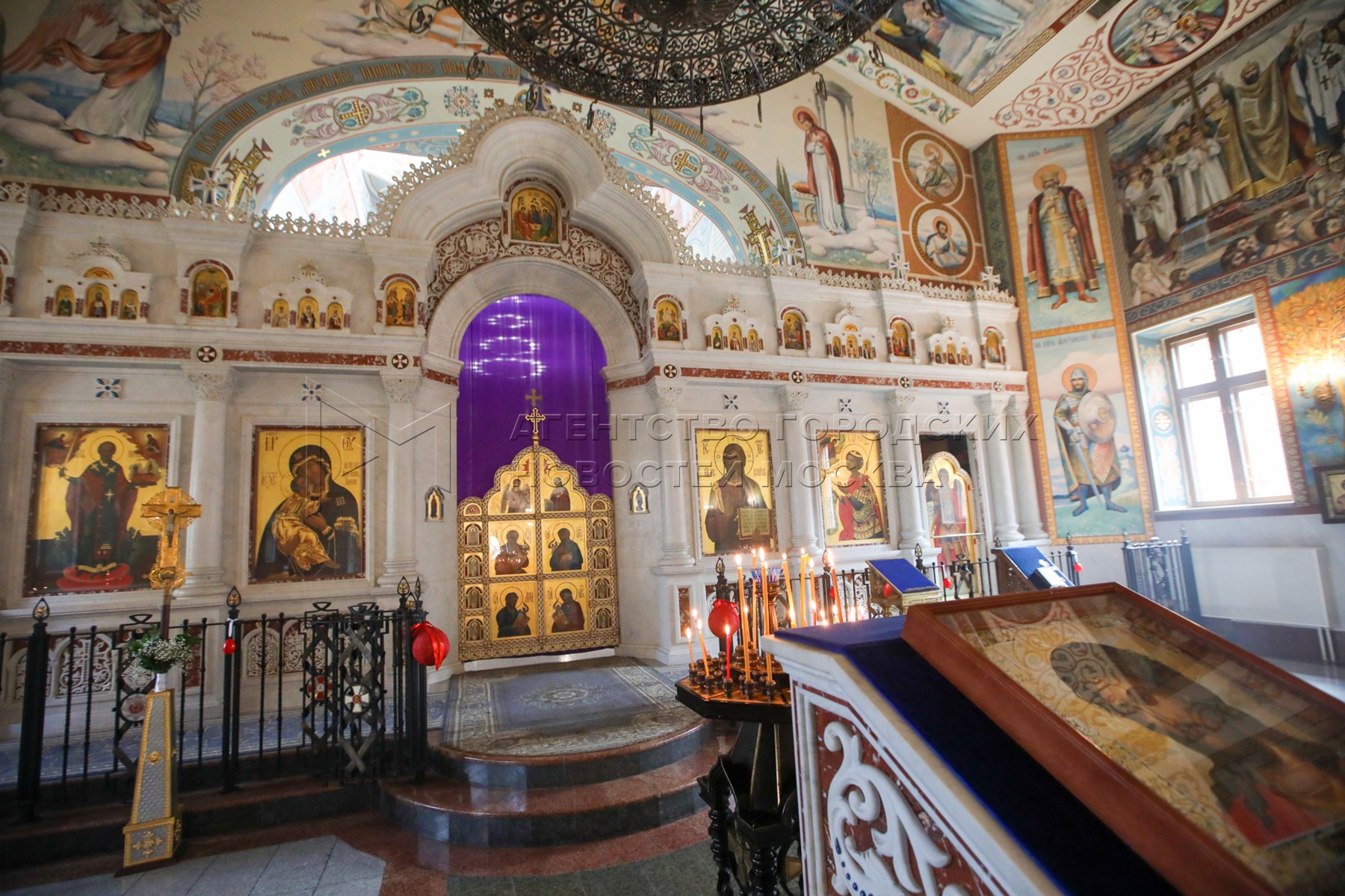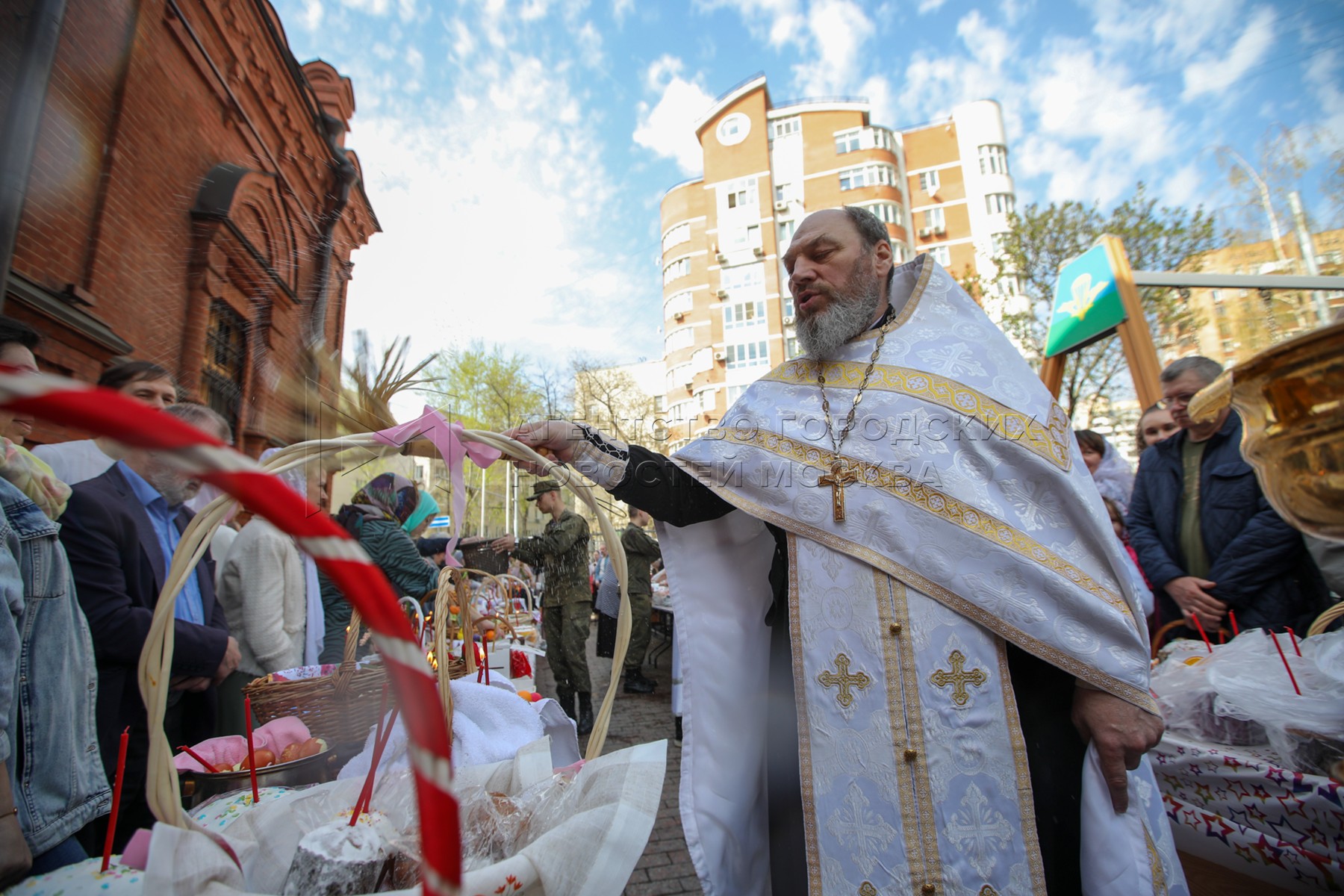 Освящение пасхальных куличей и яиц в храме Благовещения Пресвятой Богородицы в Сокольниках.