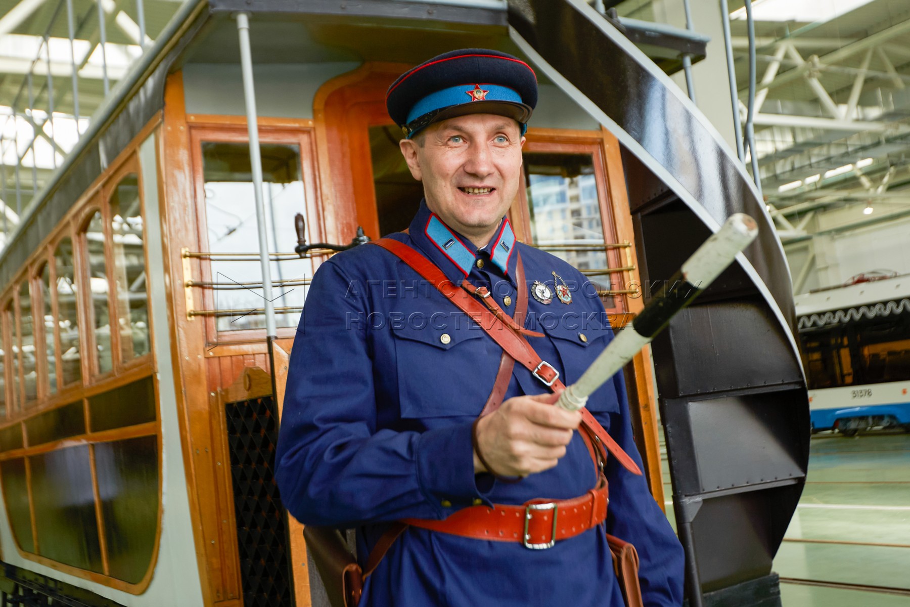 Директор НИИ «МосТрансПроект» Владимир Титов. Выставка ретровагонов на территории обновленного трамвайного депо им. П.Л. Апакова.
