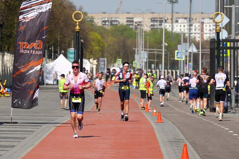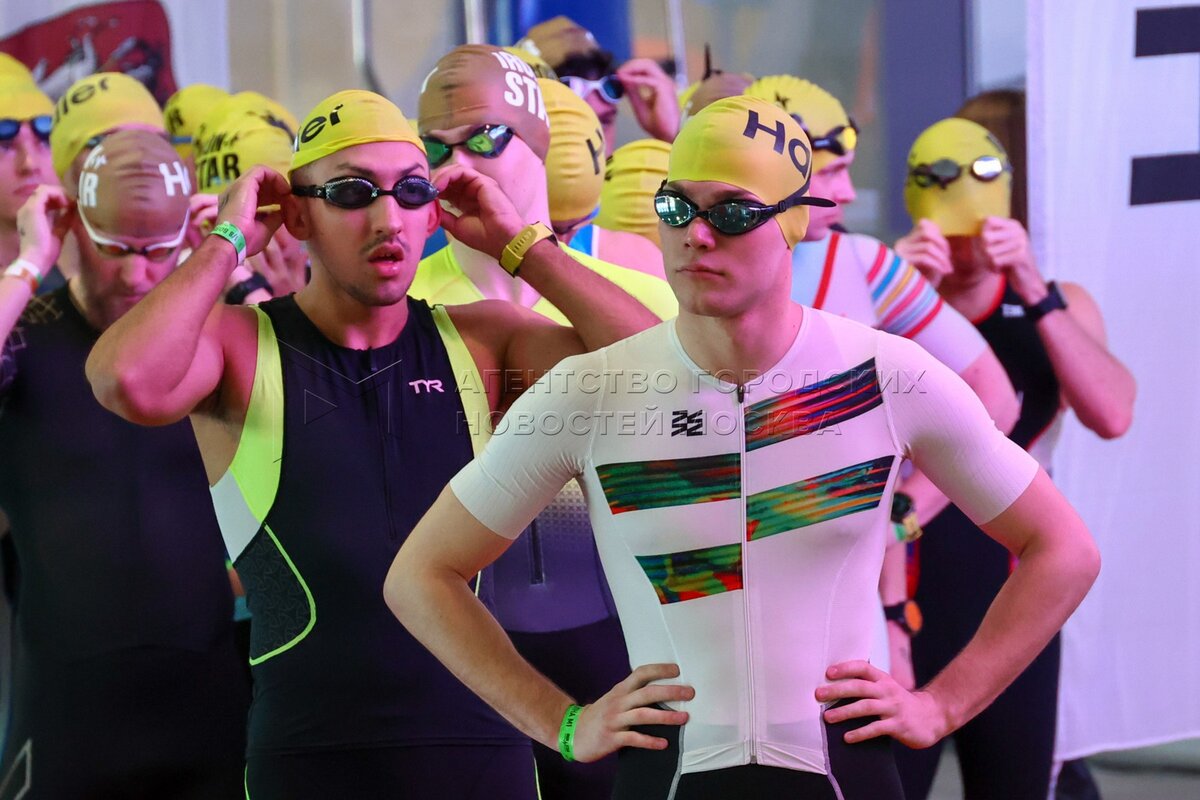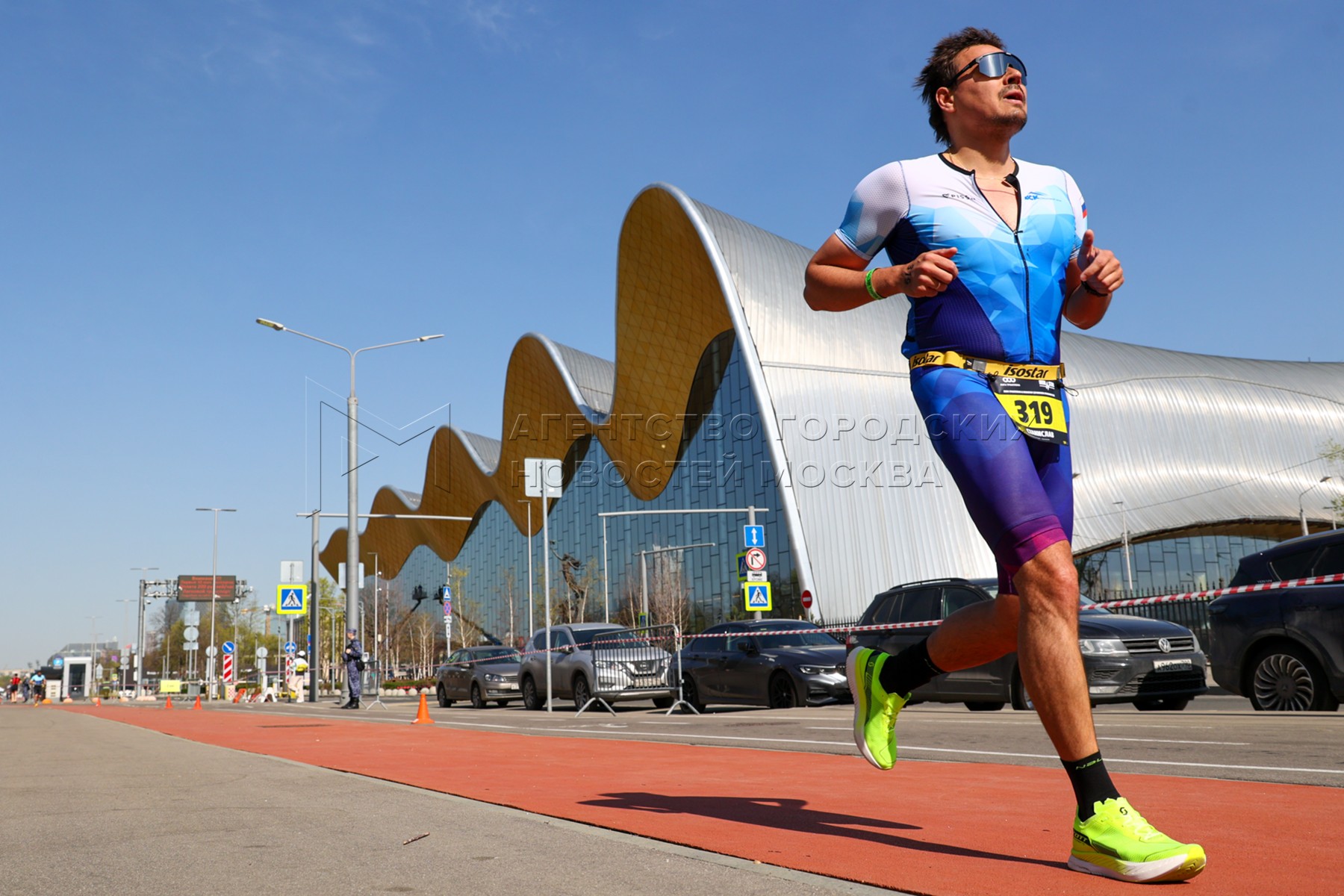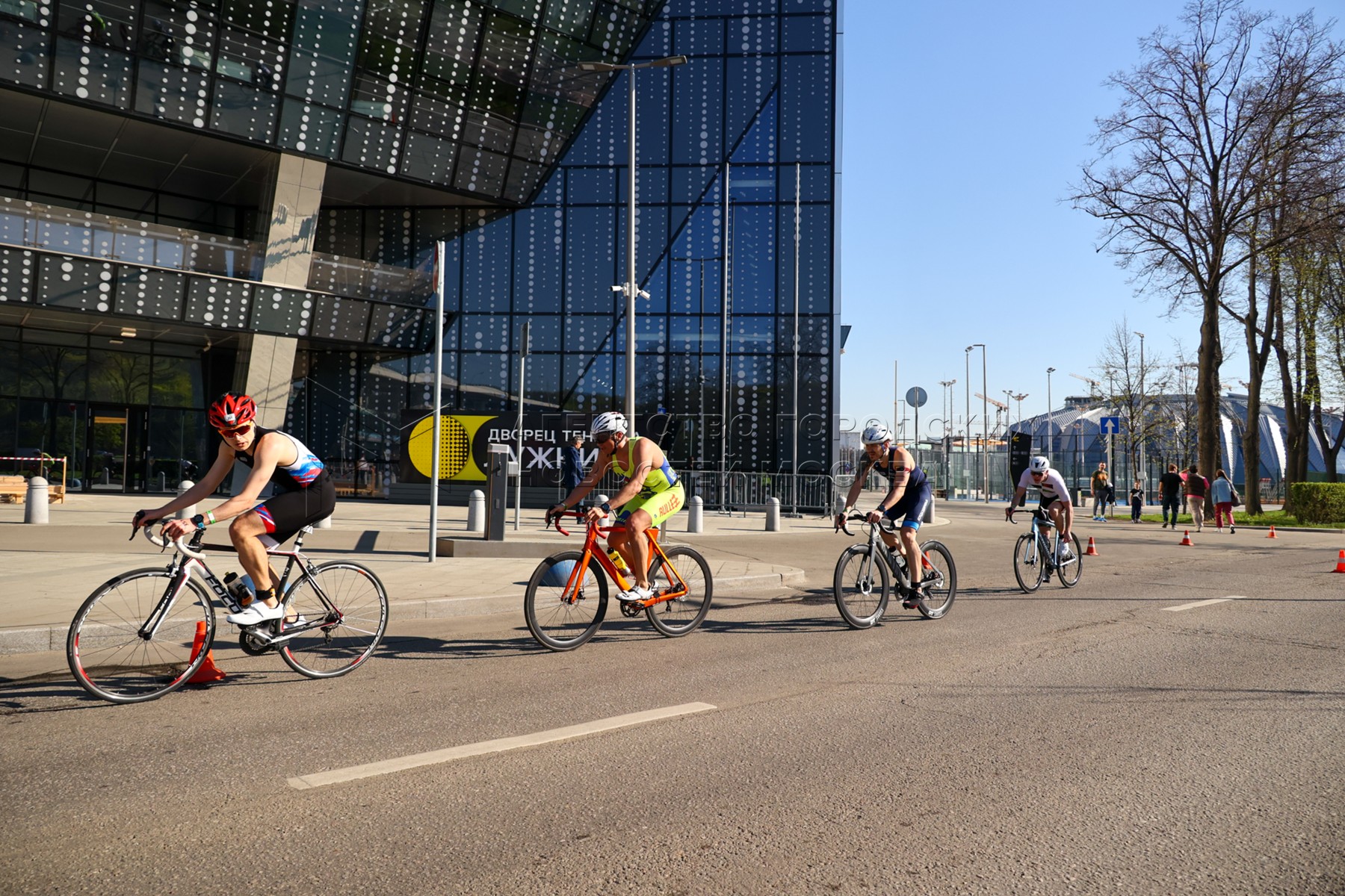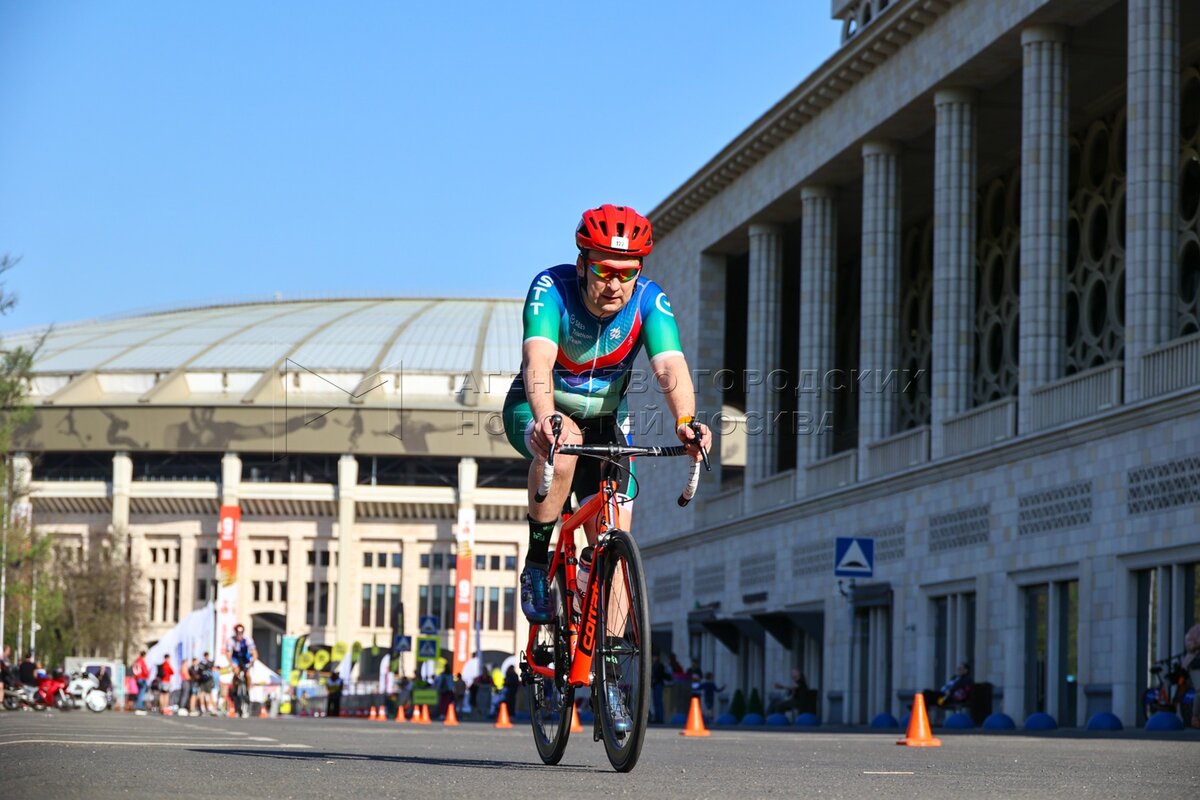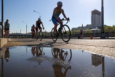 Спортсмены во время этапов соревнований «Лига триатлона & Ironstar 1/8» в Лужника...