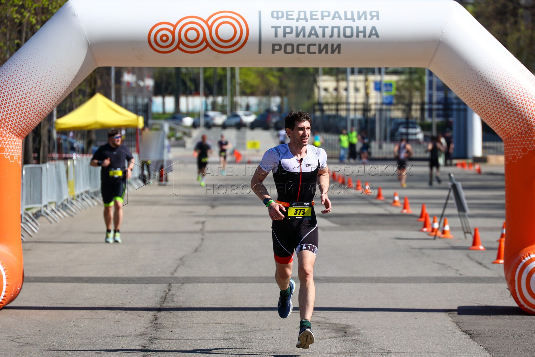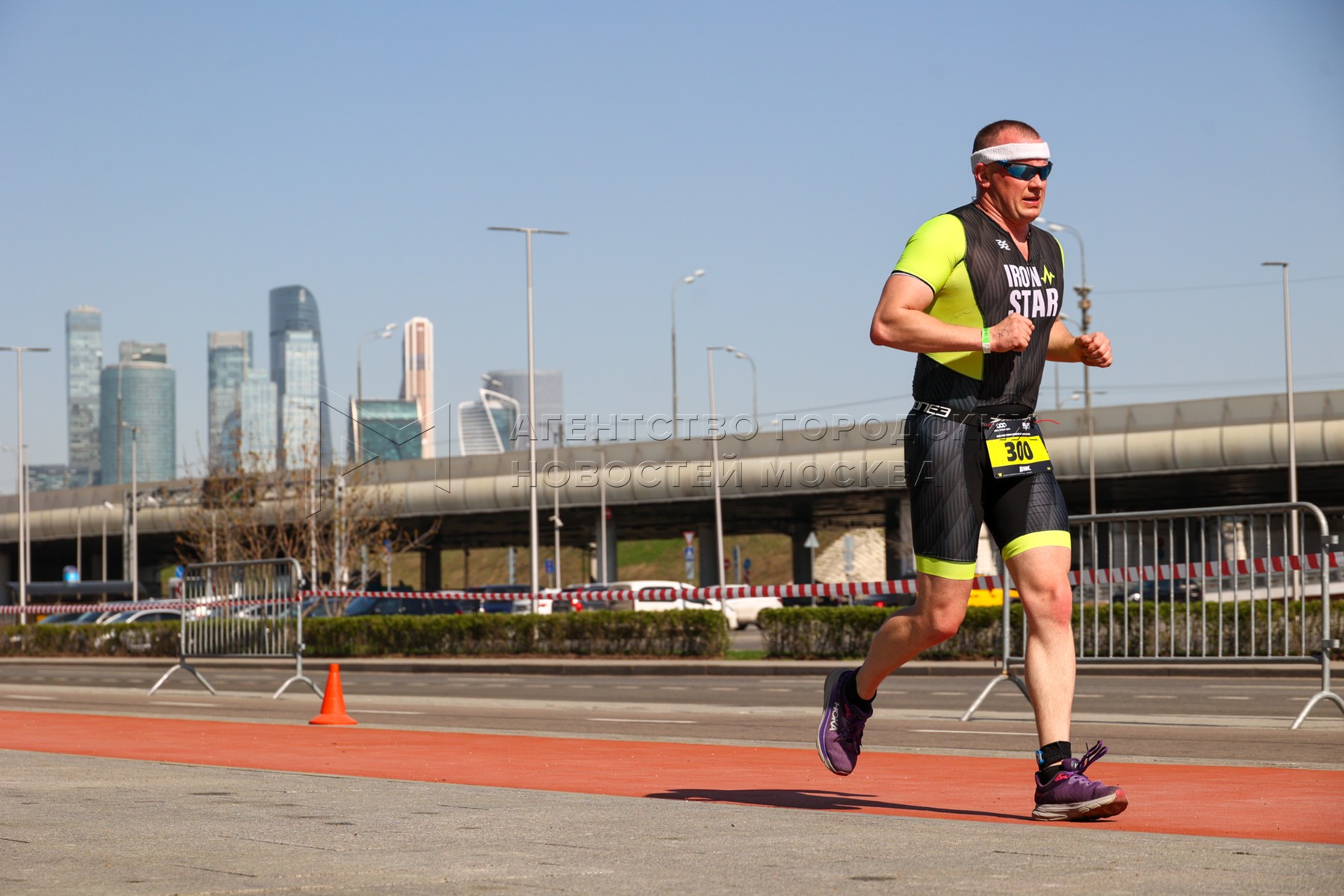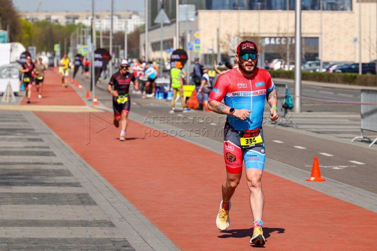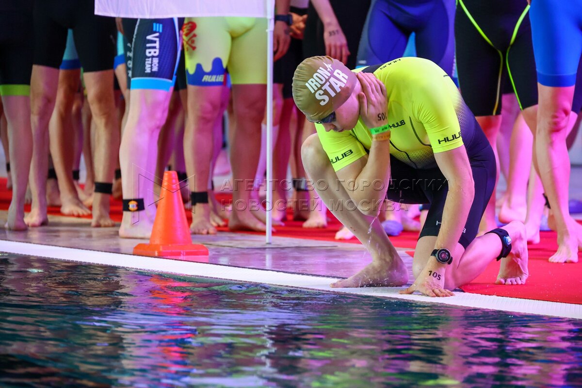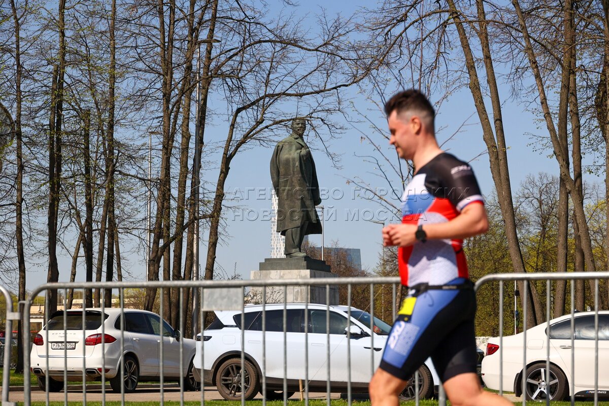 Спортсмены во время этапов соревнований «Лига триатлона & Ironstar 1/8» в Лужника...