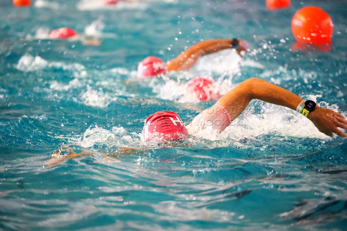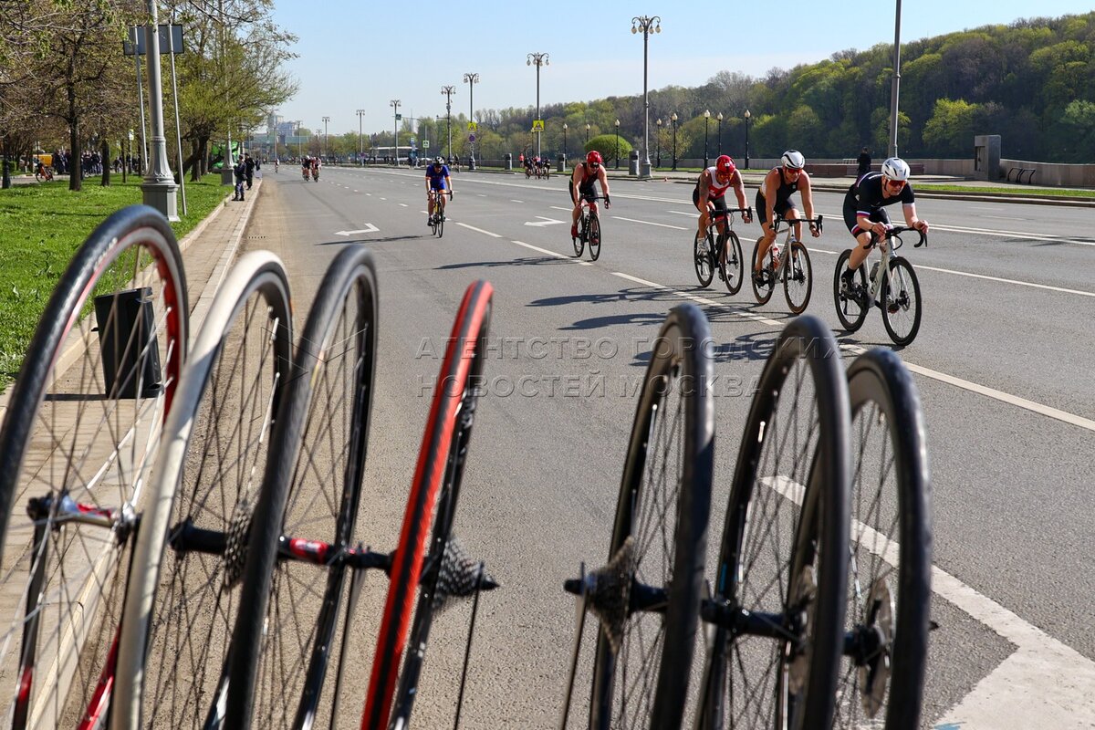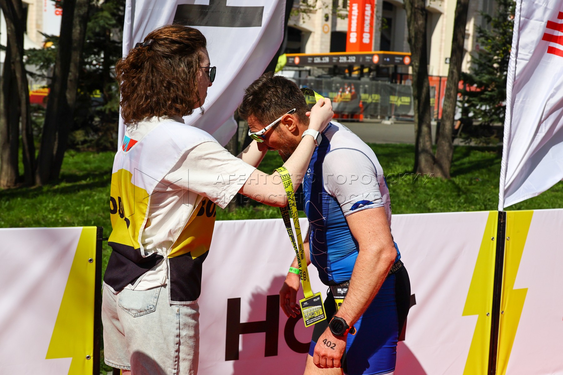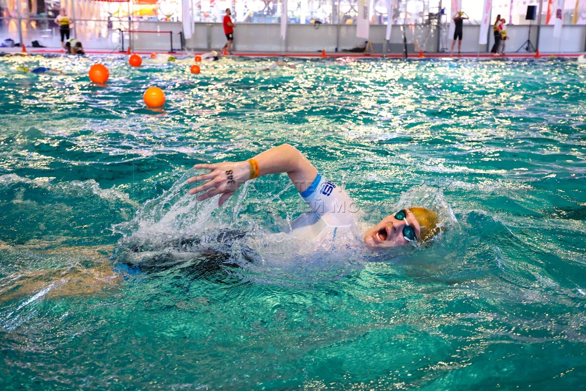 Спортсмены во время этапов соревнований «Лига триатлона & Ironstar 1/8» в Лужника...