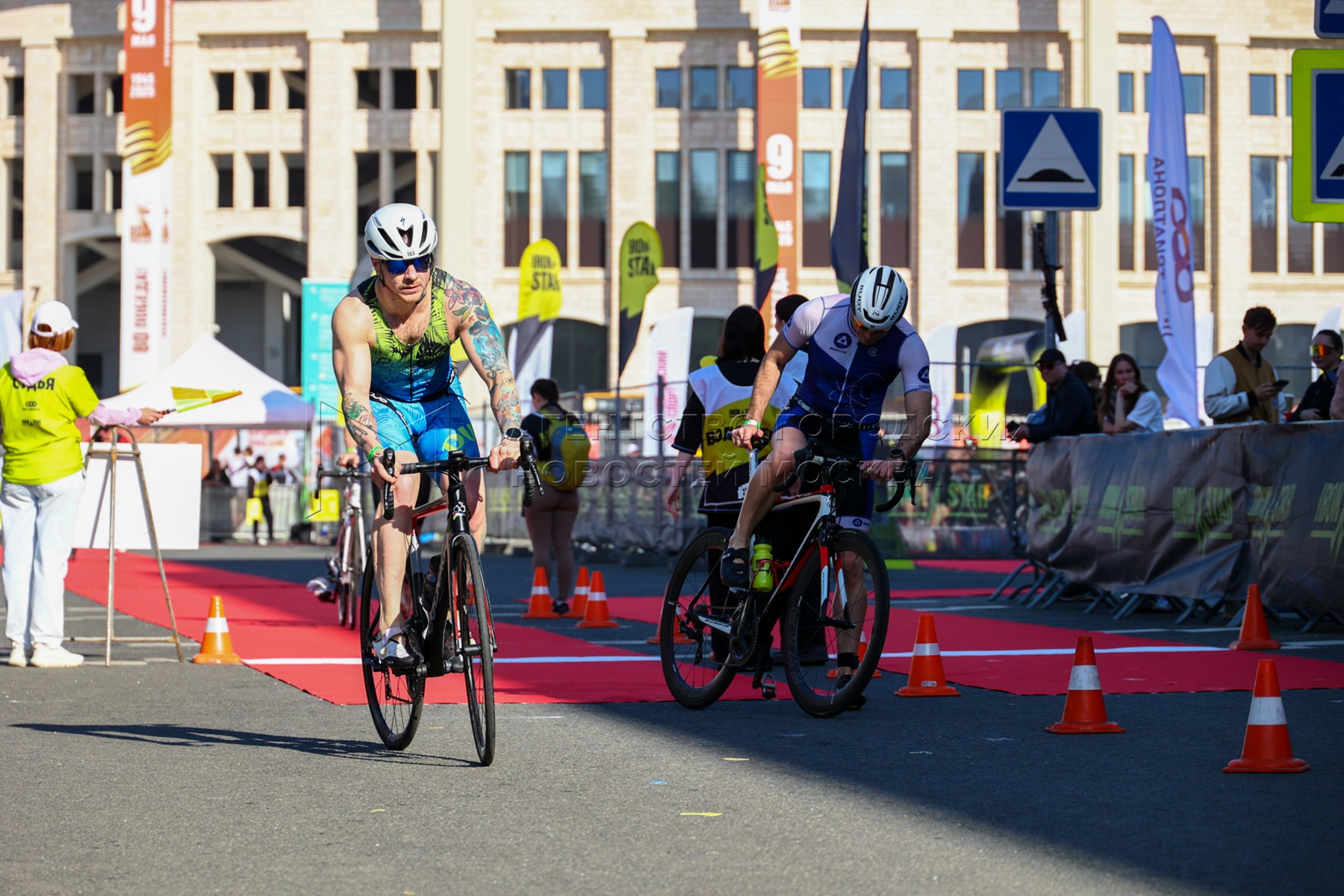 • Описание: Спортсмены во время этапов соревнований «Лига триатлона & Ironstar 1/8» в Лужниках.