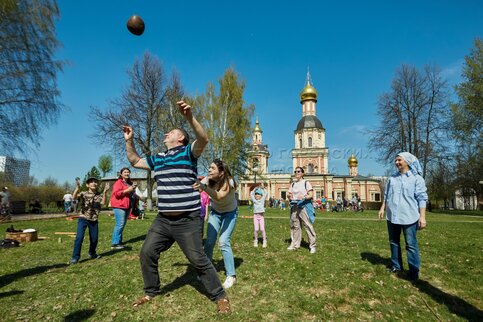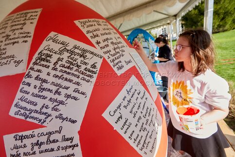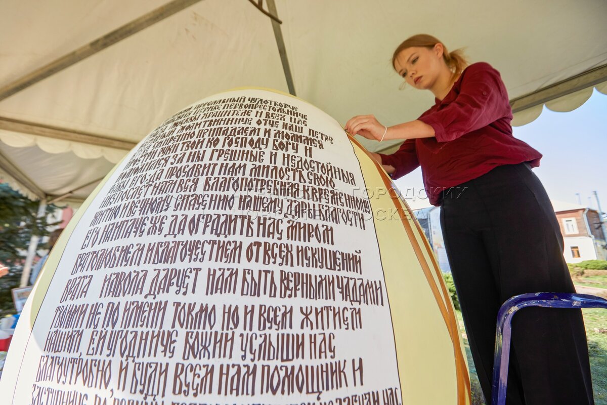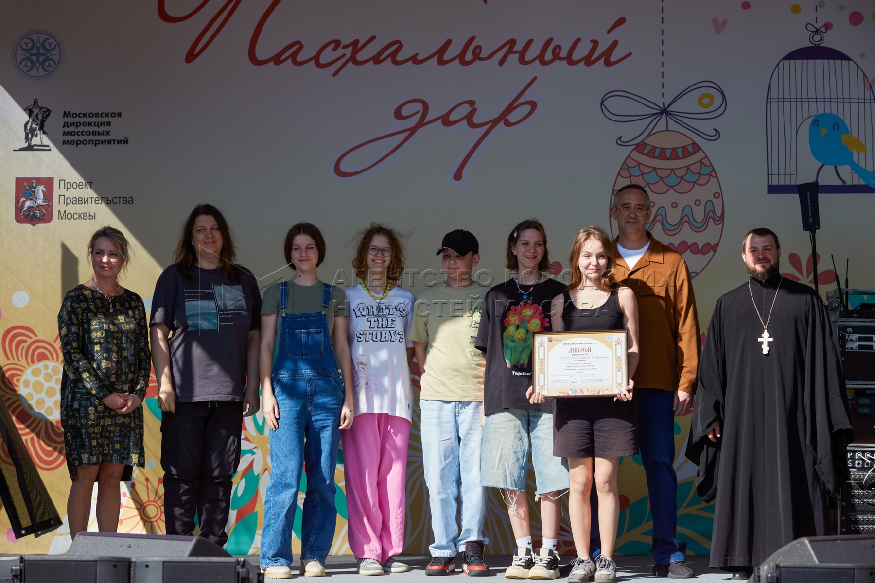 • Описание: Участники конкурса росписи Пасхальных яиц на фестивале «Пасхальный дар», который проходит на прихрамовых территориях храма Троицы Живоначальной в Свиблово в день Светлой Пасхи.
