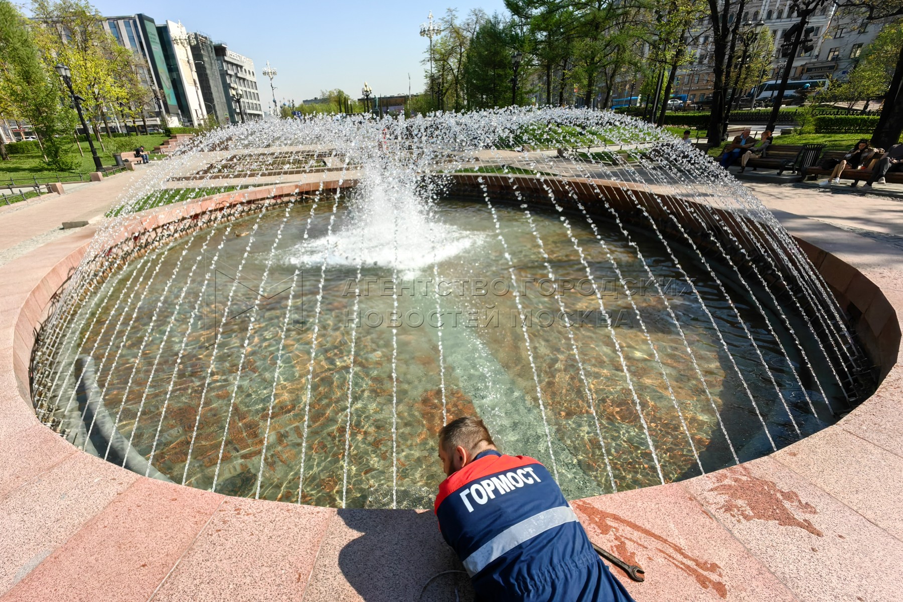 • Заголовок: Технический пуск фонтана в Новопушкинском сквере