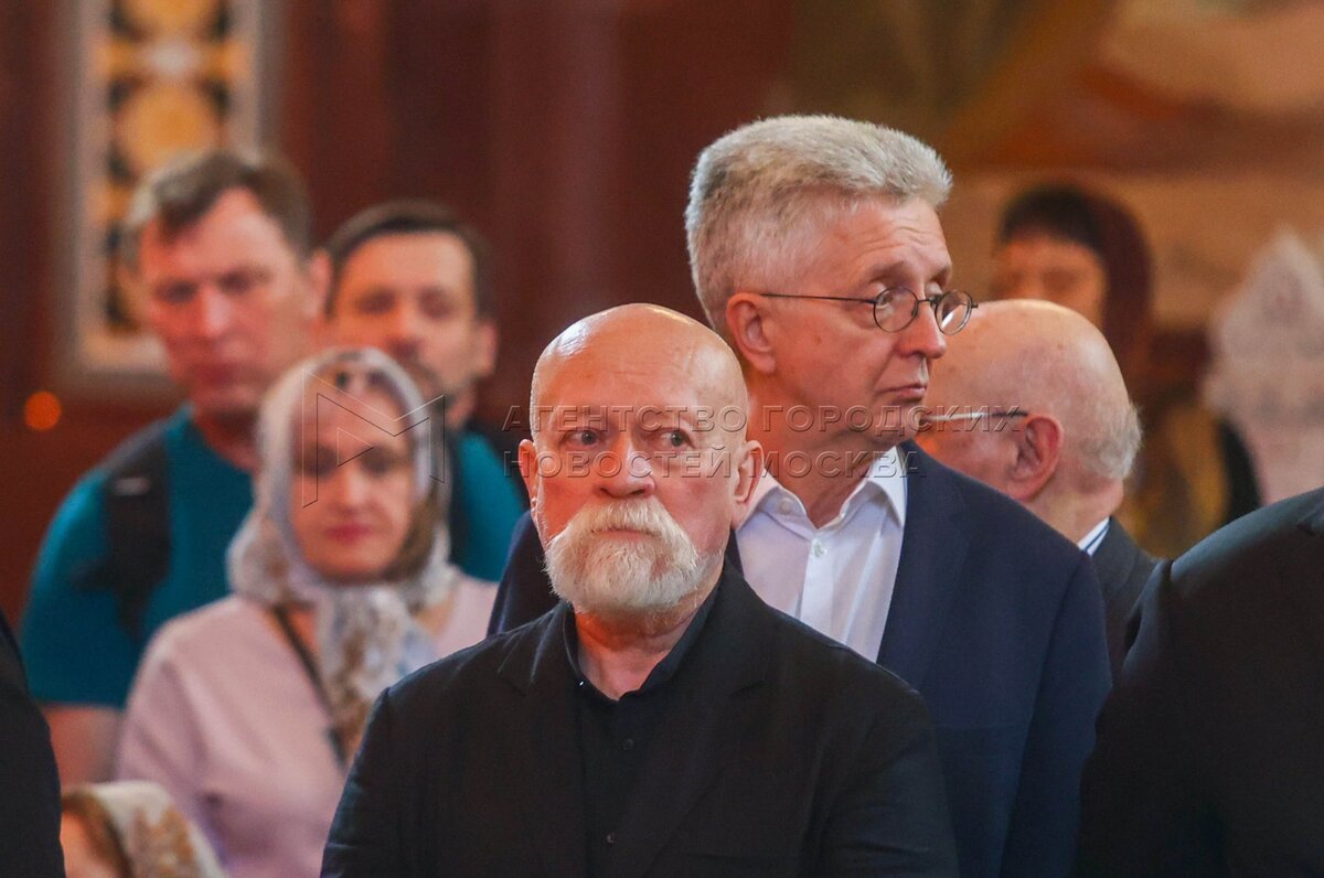 Телеведущий Андрей Малахов (в центре). Прощание с президентом Российской академии художеств Зурабом Церетели в храме Христа Спасителя.