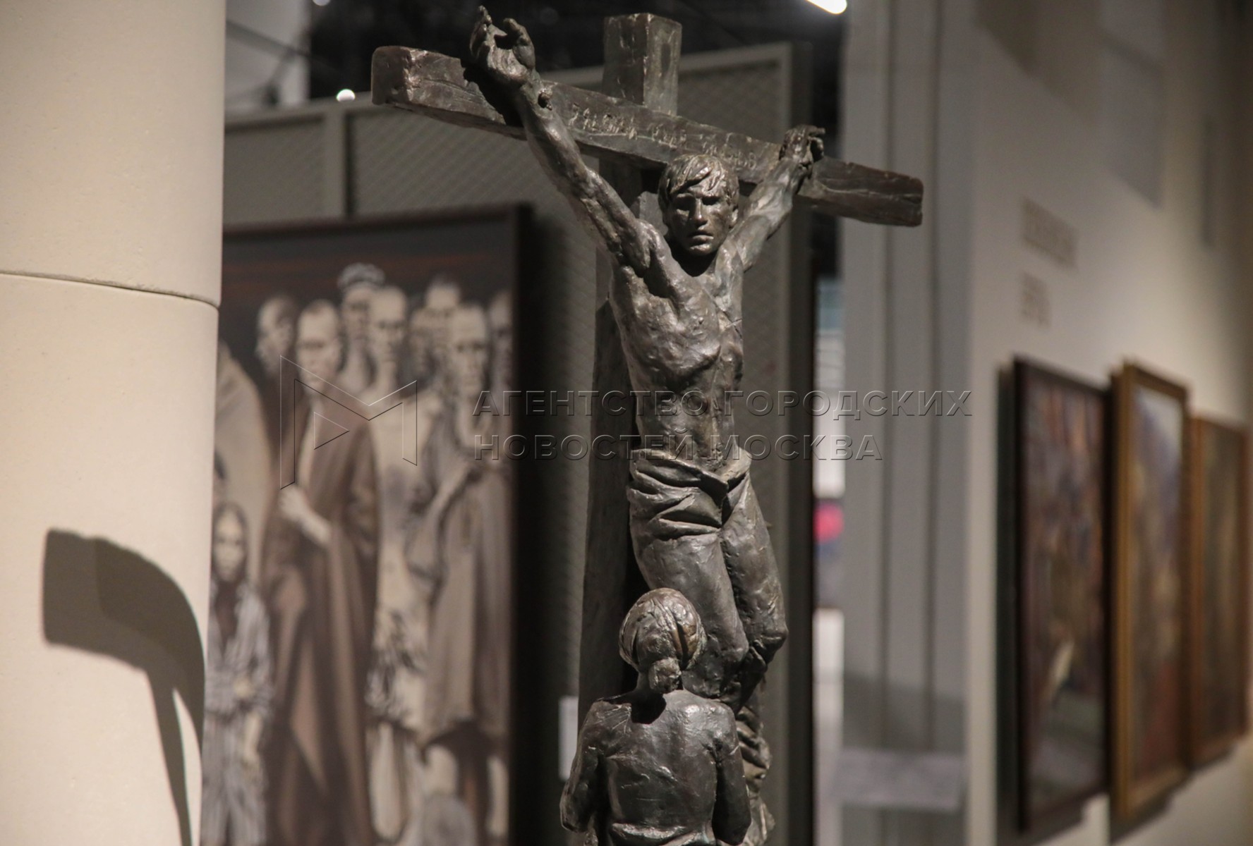 Экспозиция выставки «Грековцы. Под знаменем Победы», посвященная 80-летию Победы в Великой Отечественной войне и 90-летию Студии военных художников имени Грекова, в многофункциональном подземном пространстве «Паркинг галерея» московского парка «Зарядье».