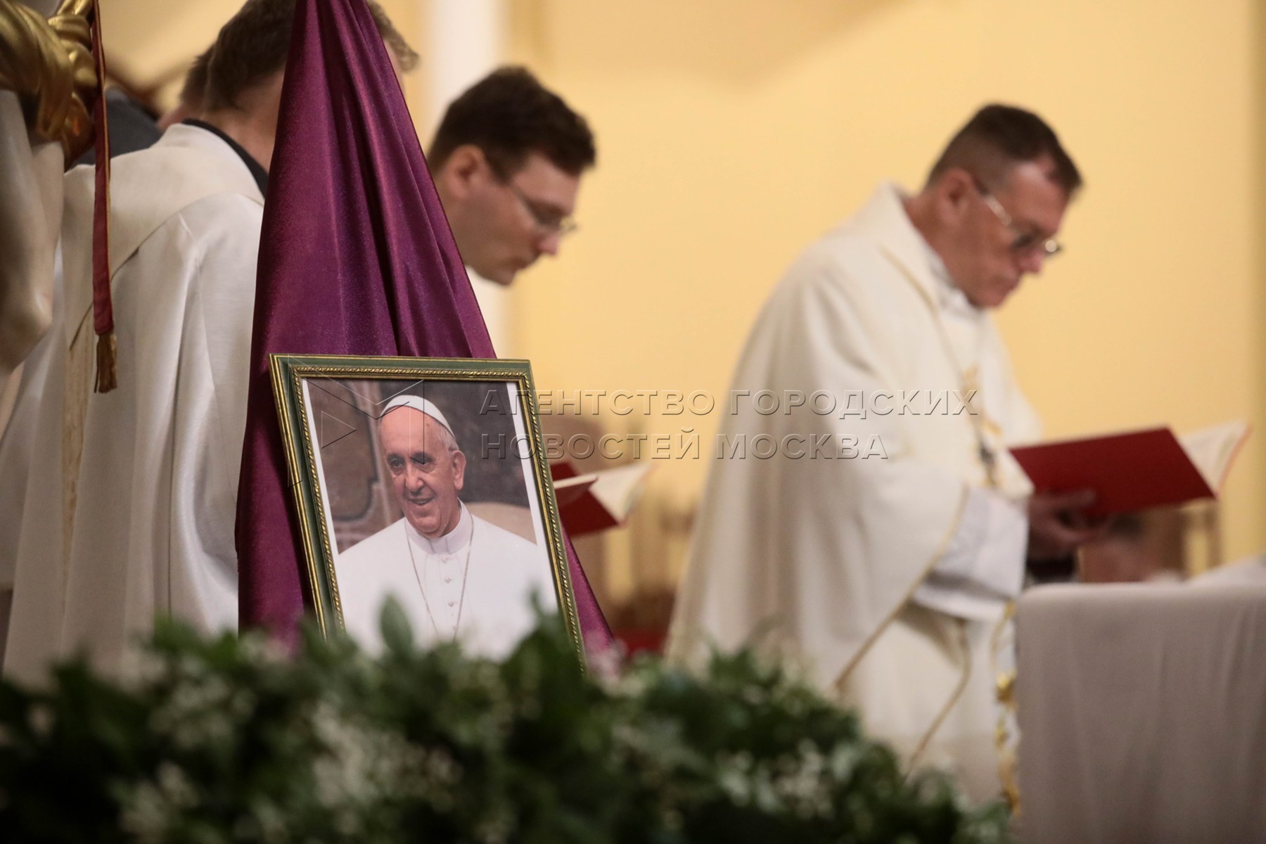 • Заголовок: Месса в память об умершем папе Франциске в соборе непорочного зачатия пресвятой девы Марии в Москве