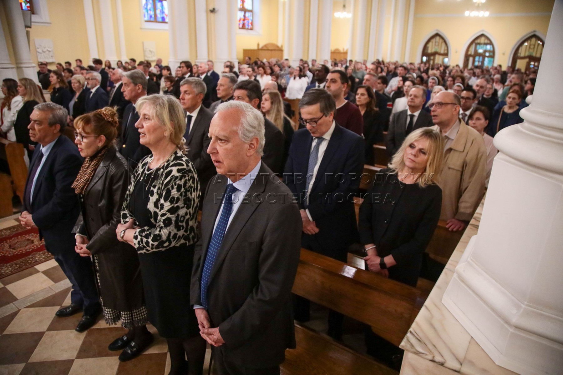 Святая месса в память об умершем папе римском Франциске в римско-католическом каф...