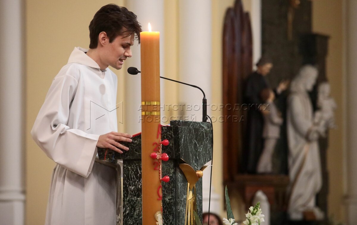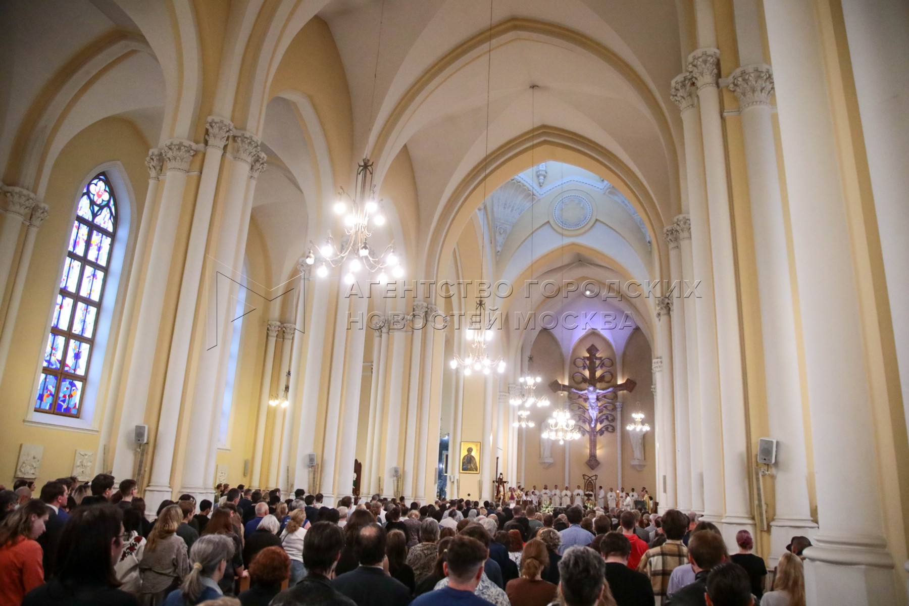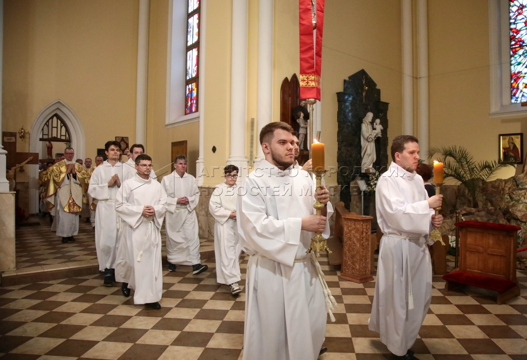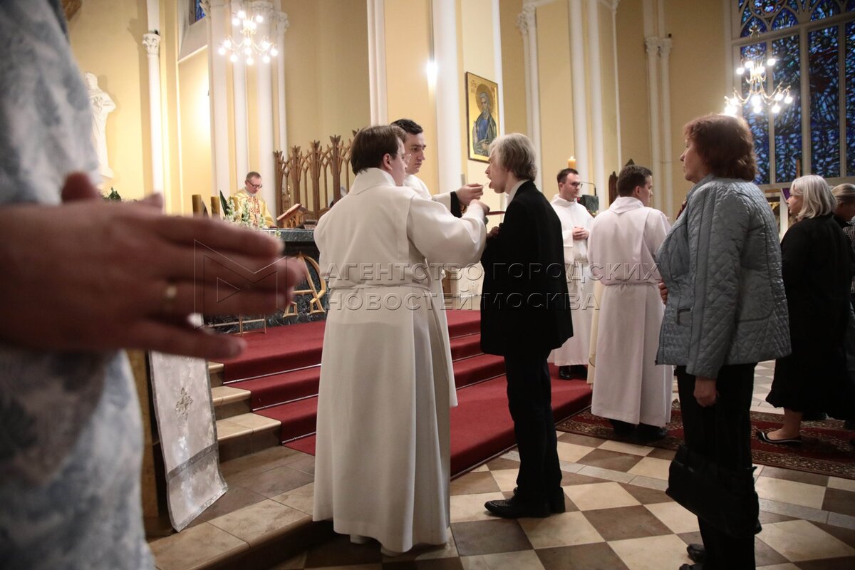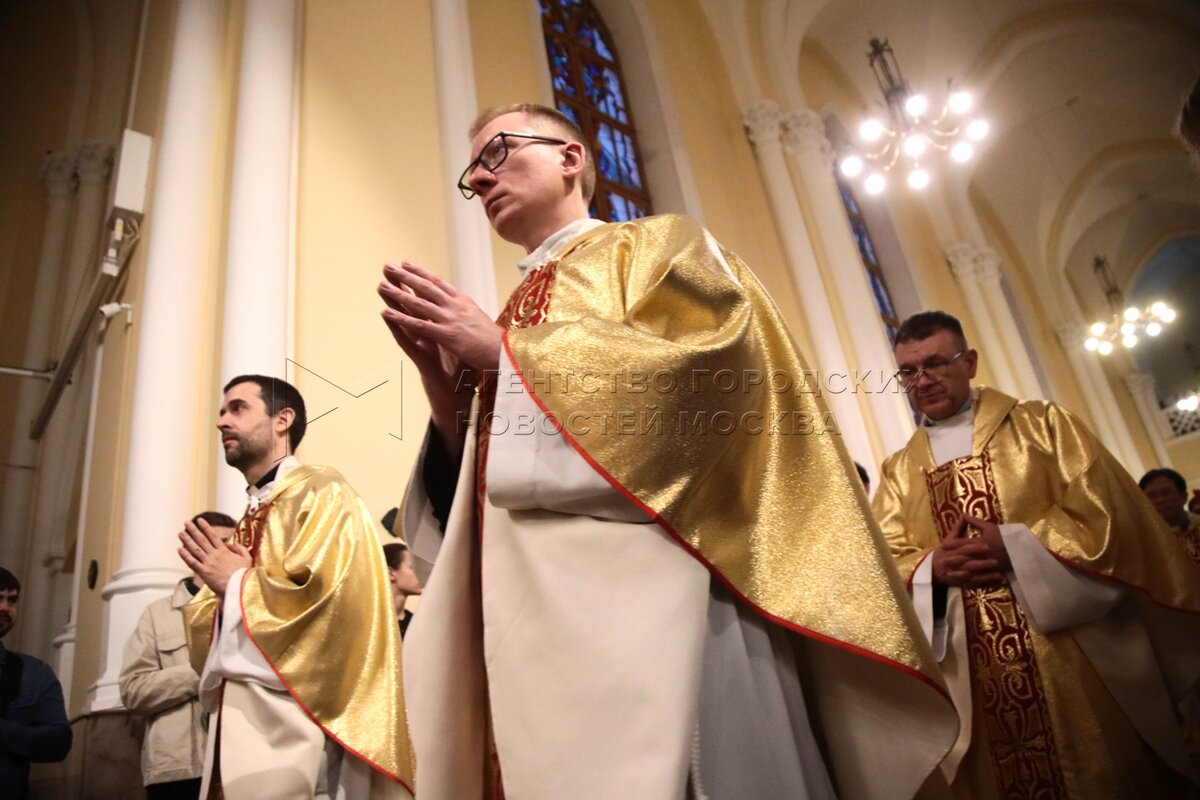 Святая месса в память об умершем папе римском Франциске в римско-католическом кафедральном соборе непорочного зачатия пресвятой девы Марии в Москве.