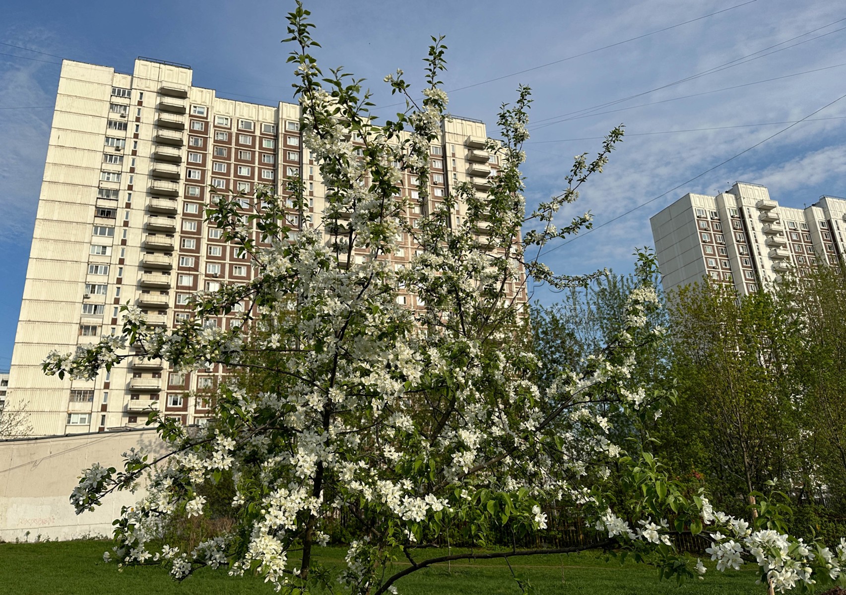 • Описание: Цветение яблонь на улицах Москвы.