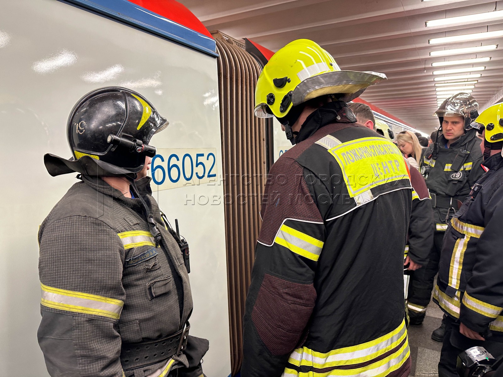 - Заголовок: Работа оперативных служб по извлечению упавшего под поезд пассажира на станции метро «Полежаевская»