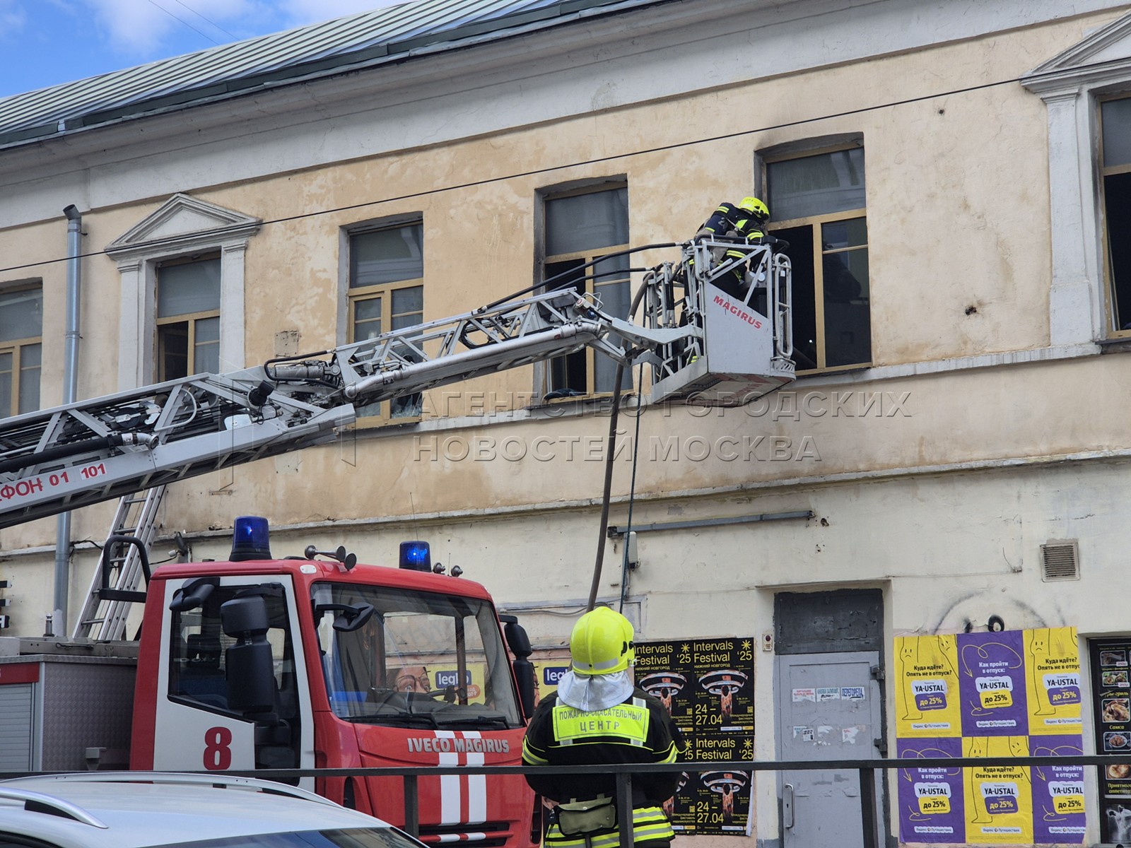 • Заголовок: Ликвидация пожара в историческом двухэтажном здании в центре Москвы