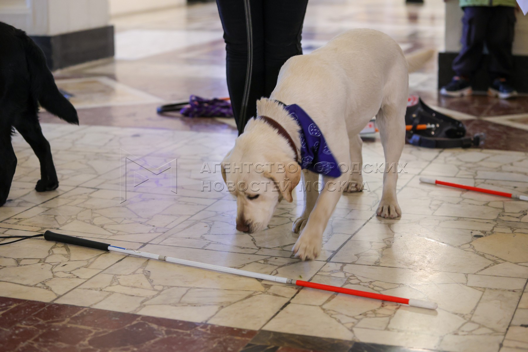 Международный день собак-поводырей на Северном речном вокзале Москвы.