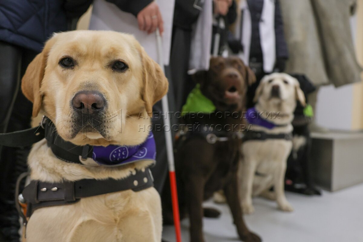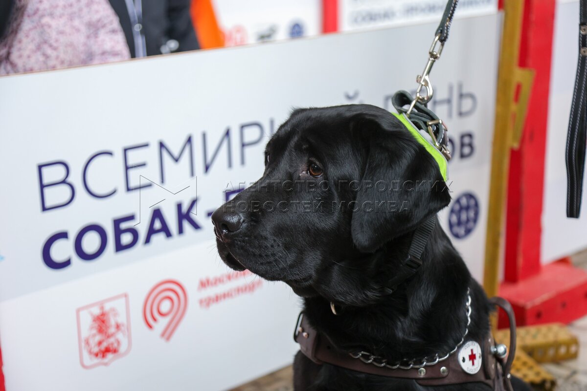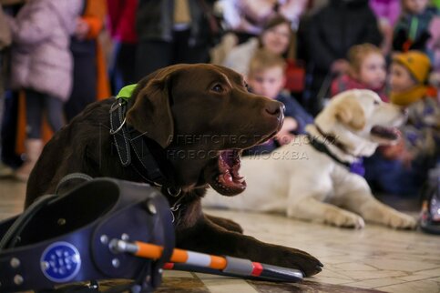 Международный день собак-поводырей на Северном речном вокзале Москвы.