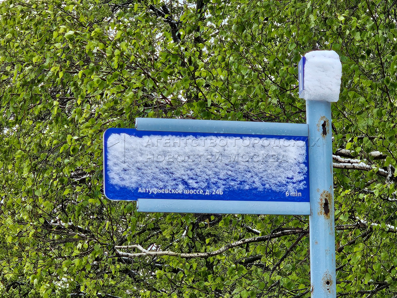 • Описание: Снег в Московском регионе 2 мая 2025 года.