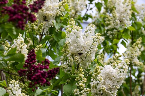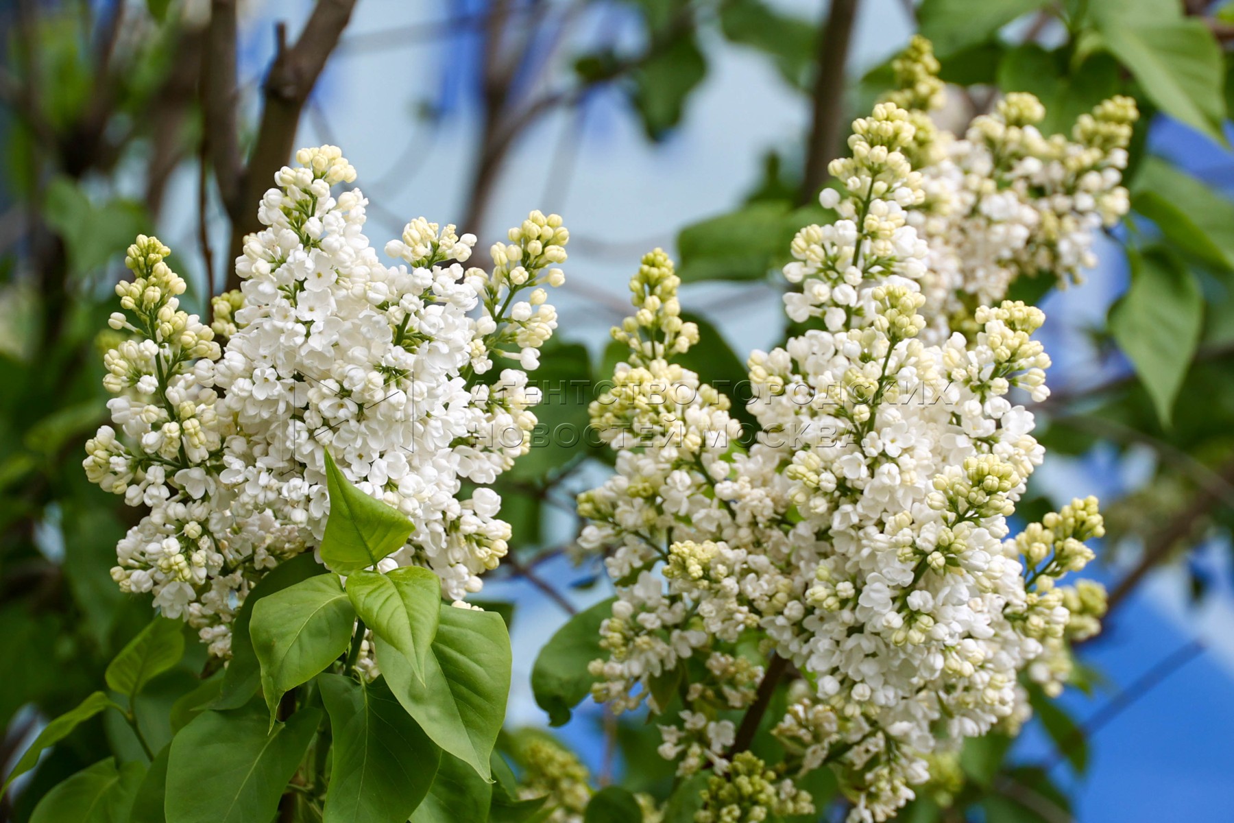 Кусты белой сирени. Цветение на ВДНХ.