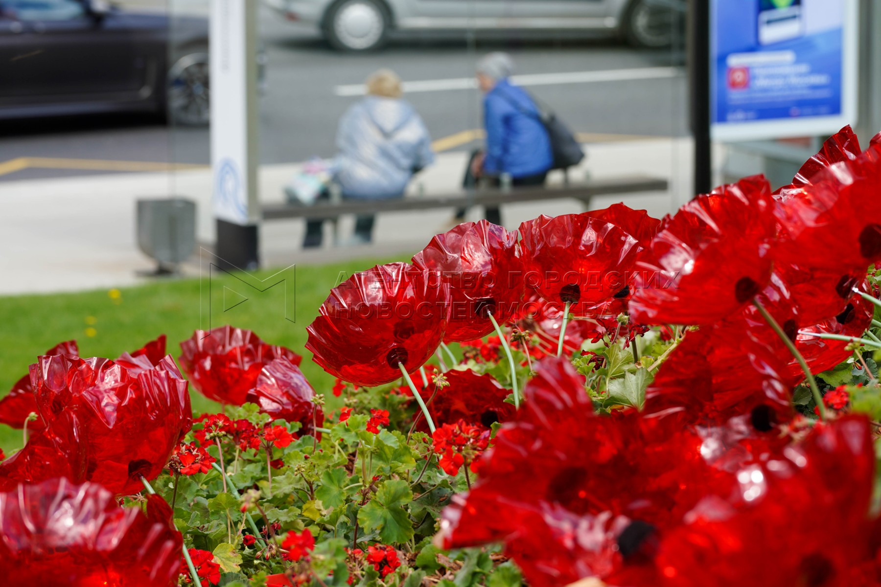 Клумбы алых гвоздик – цветов Победы на Тверской улице. Специальный проект фестива...