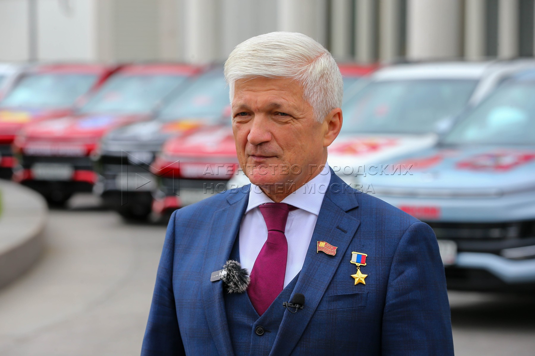 Передача командами автопробега «Города-герои – города героев» капсул с землей из 11 городов-героев России и Белоруссии председателю Московской городской думы Алексею Шапошникову в день 60-летия присвоения столице звания «Город-герой».