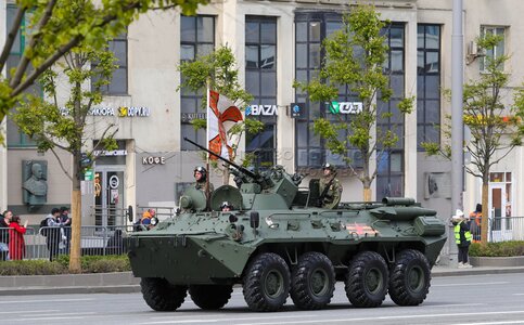 • Заголовок: Колонны военной техники возвращаются с парада Победы