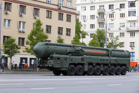 Колонны военной техники возвращаются после парада Победы на Красной площади.